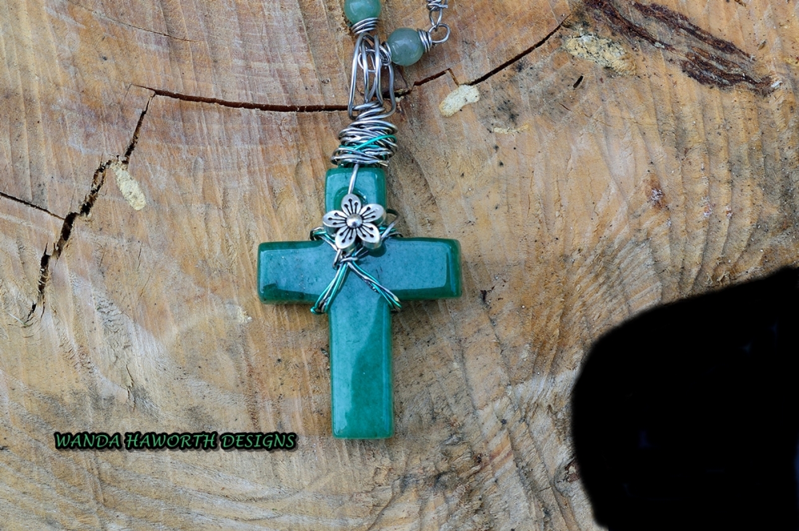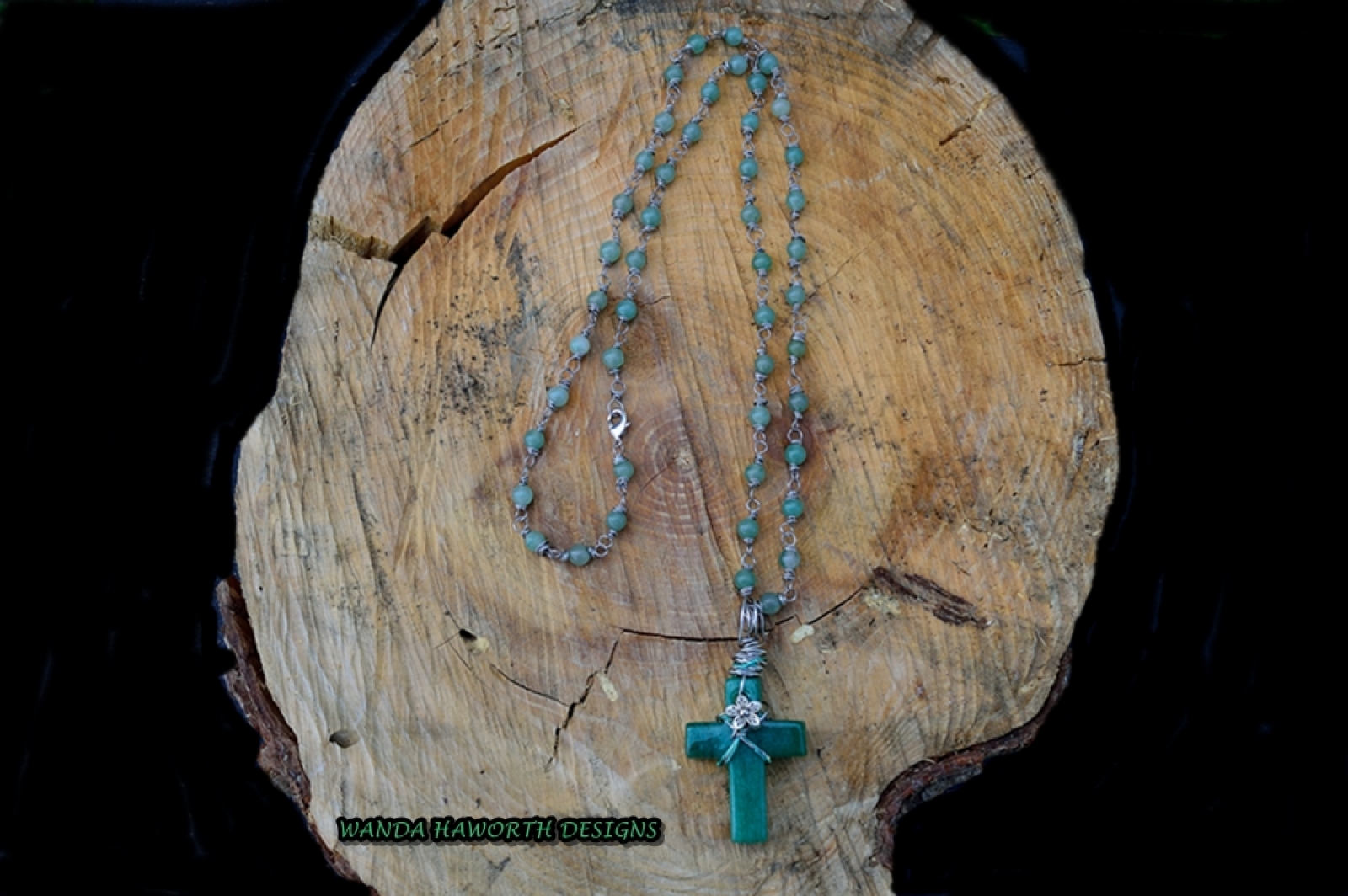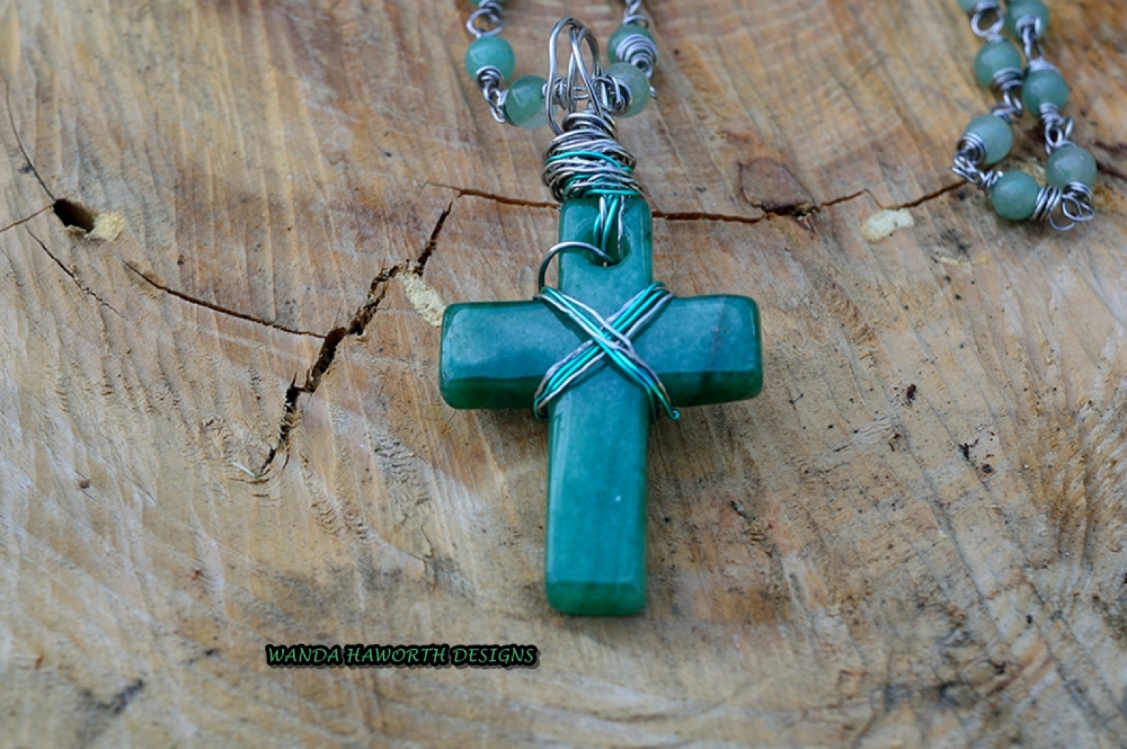 Aventurine Cross , Aventurine Stone 6 MM Bead Accent Necklace , Hand Carved and Hand Made Necklace